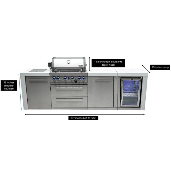 Mont Alpi Deluxe Series 9 Ft Propane Outdoor Kitchen Island w/ Side Burner & Refrigerator