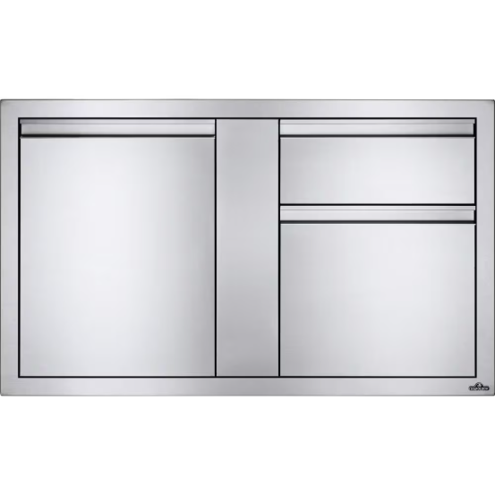 Customize your outdoor grill island with Napoleon built-in components. Measuring 42 inches wide by 24 inches high, this stylish stainless steel large single door and double drawer combo gives you the added storage that every outdoor kitchen needs. Anodized aluminum handles pair with soft closing hardware to provide durability and comfort. The seamless trim provides flexible and flawless installation. You know you can expect quality when Napoleon has their named stamped subtly into the side of this sliding drawer. These built-in storage components are ideal for any outdoor kitchen.