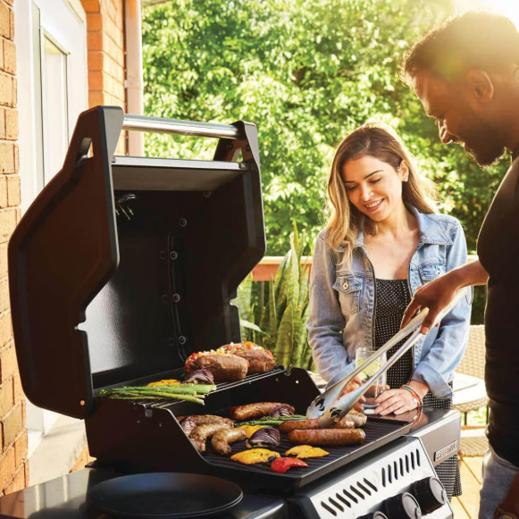 The Freestyle 365 Propane Gas Barbecue is a compact grill with premium features and unbeatable value. Ignited by the instant JETFIRE ignition system that lights the main burners with a jet of flame easily, every time. Get the perfect sear over the cast iron porcelainized enamel cooking grids. Three stainless steel burners provide heat that can be easily controlled by ergonomic knobs and monitored by the onboard temperature gauge. The rugged wheels allow this barbecue to go where the action is, while the easy-to-fold side shelves, featuring tool hangers and a bottle opener, make sure that the Freestyle meets your lifestyle and space.
