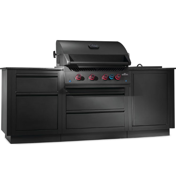Bask in the luxury of an outdoor kitchen with the OASIS® 301 Modular Island Kit. Providing the perfect amount of storage and workspace along with the full-sized, 700 Series 32-inch propane gas grill head. This unit comes with a propane tank storage cabinet that features a rollout for easy propane changes. Each cabinet is built for durability, featuring Matte Black, powder coated, galvanneal, and soft-close doors and drawers to prevent slamming and ensure quiet, smooth operation. Fully customize this workspace by selecting your own countertop in the material and finish that matches your style. The hard work is already done and all necessary specs are provided. OASIS® Modular Island Kits are easy to install. There are knockouts for electrical, gas, and water, as well as easy-to-level feet. Create the perfect outdoor kitchen experience with loads of convenient storage and a durable finish that will handle anything the elements can throw at it.