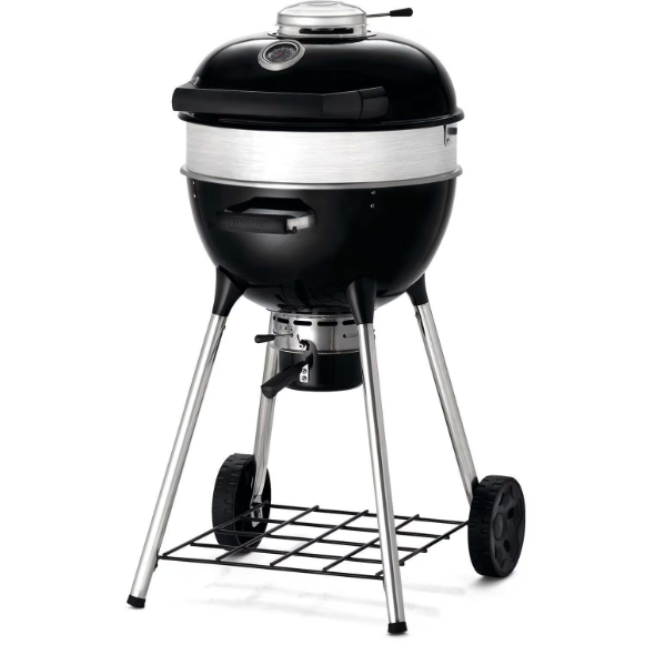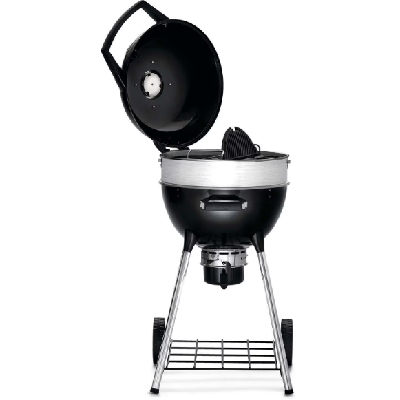 Napoleon‘s agile Charcoal Kettle Grill, the PRO18K―LEG, is an 18―inch kettle perfect for any charcoal enthusiast. Grill and slow roast with ease, or smoke with your favorite wood. Cast iron grids can be set at three elevations, ideal for the way you want to BBQ. These grids are hinged for easy access, making it easy to add charcoal, refill water pans, and introduce smoking wood. When charcoal grilling, heat control through airflow is essential, our Smoke Stack Chimney protects your barbecue from gusts and rain while remaining precise. The Vortex heat management system improves convection within the grill for better searing and smoking as well as improved fuel efficiency. The stainless steel extension ring is rotisserie ready, with doors to cover the spit rod ports. Integrated doors for temperature probes ensure that your cook will go exactly to plan. Highly durable, our porcelain―coated steel body shrugs off wear while the offset hinged lid allows access to the whole cooking surface.