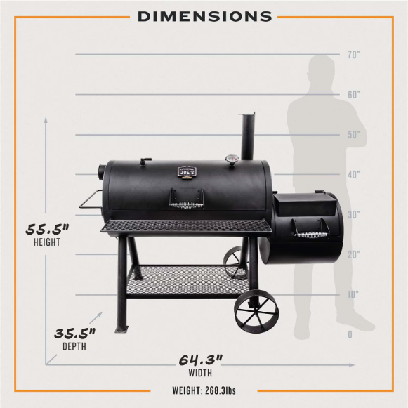 Elevate the classic smoking experience with the large-capacity Oklahoma Joe’s Longhorn Reverse Flow Offset Smoker. Built with versatility in mind, optional smokestack locations and removable baffles let you choose between reverse flow smoking for additional even heat and smoke, or traditional offset smoking.