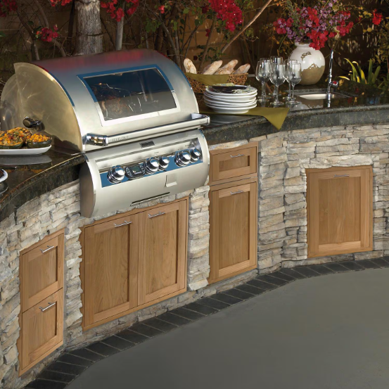 Teak is a hard, strong, and durable wood that will last for many generations. The natural oils in teak make it resistant to molds, fungus, wood rot, insects, and the effects of weather. If left untreated, the teak will age naturally to a beautiful silver gray. You can customize the look further by applying stains or oils suitable for natural teak wood. With the natural benefits of teak, this cabinetry is the perfect addition for a long-lasting outdoor living space.