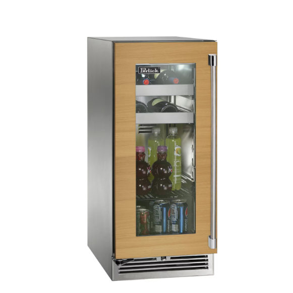 Perlick 15-Inch Signature Series Stainless Steel Panel Ready Glass Door Outdoor Beverage Center w/ Door Lock – Left Hinged – HP15BO-4-4LL