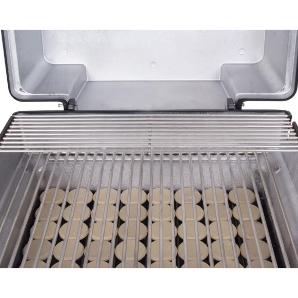 This PGS A30 Cast Aluminum Grill features durable and permanent cast aluminum housing and a 30,000 BTU stainless steel dual-control H-shaped burner. The Sure Start electronic ignition ensures that lighting your grill is a quick, safe, and easy process. The 1/4 inch stainless steel rod cooking grids, ceramic Moon Roks, and porcelain coated steel Moon Rok tray deliver even heat distribution across 330 square inches of main cooking area. The 121 square inch warming rack provide additional cooking area. This A30 gas grill also includes one stainless steel side shelf, black powder coated aluminum pedestal, and portable base with two solid rubber wheels and two casters. Propane regulator and hose included.