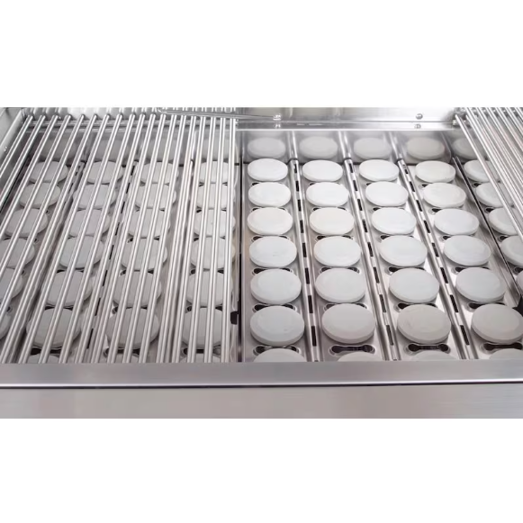 - Unique Stainless Steel Vari-Grid grill grates are spaced closer together in the center for grilling smaller items