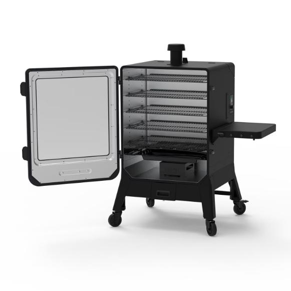 Master your backyard smoking with this Wi-Fi and Bluetooth enabled Pit Boss Navigator 6-Series Vertical Pellet Smoker, delivering an impressive 2,224 sq. in. of cooking space across 5 oversized racks – each large enough to hold two full-size foil pans. With digital controls, 5 degree temperature increments, and a smoking range of 130 – 420 degrees, it’s built for precision and consistency. The 75 lb. hopper, convection airflow, rapid igniter, large viewing window, and durable steel construction offer unmatched convenience and performance – all backed by a 5-year warranty.