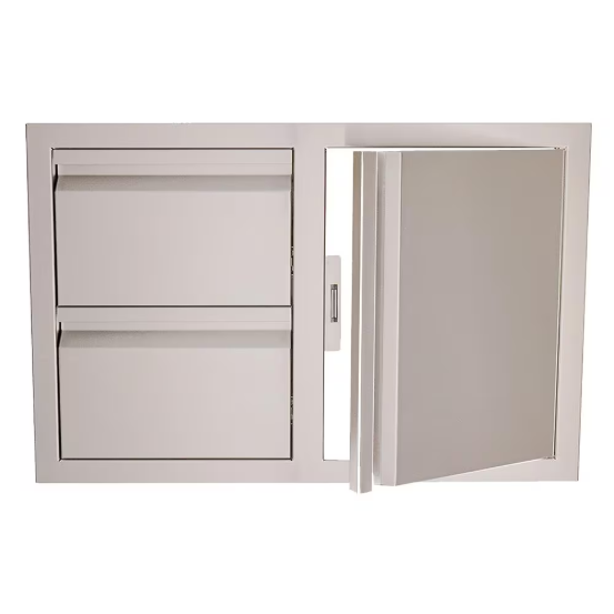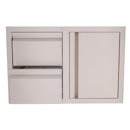 To enhance the design and function of your outdoor kitchen the VDC1SCR fully enclosed double drawer and door combo is perfect for storing tools, utensils, or a propane tank. The drawer/door combo features double-lined 304 stainless steel for maximum strength and durability.