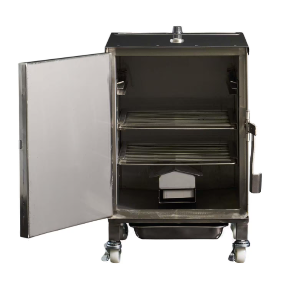 The Smokin Tex 1100 Pro Series Stainless Steel Electric Smoker is mobile, versatile, and easy to use. Just plug it in, put in the wood and food, shut the door, and set the temperature. Enjoy authentic old-fashioned pit barbecue and delicious natural wood smoked foods in your own backyard or where ever you go! Your food is slow cooked with exact temperature control from 100 to 250 degrees and will require no attention during cooking. This electric smoker features all stainless steel construction to survive the elements and double wall insulation to keep it cool to the touch. Controlled heat, combined with the no-draft cooking conditions produces a consistently moist and tender product. Smoker has three shelf positions and includes two 12 1/8 x 13 1/4 inch shelves for a maximum capacity of approximately 23 lbs. Comes equipped with a stainless steel drip pan, cookbook, and instructions. Electric smoker requires 350W/8 amps/120V. Smoker Dimensions (in inches): 14 3/4 W x 20 1/2 D x 21 1/4 H.