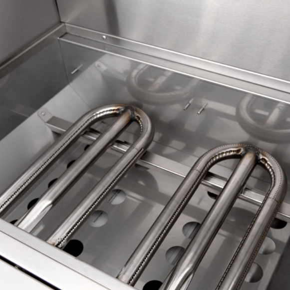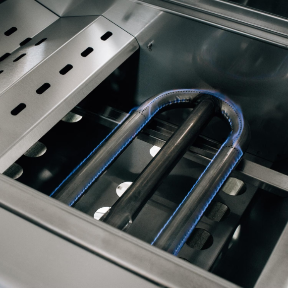 - Commercial quality U-shaped stainless steel burners deliver high heat
