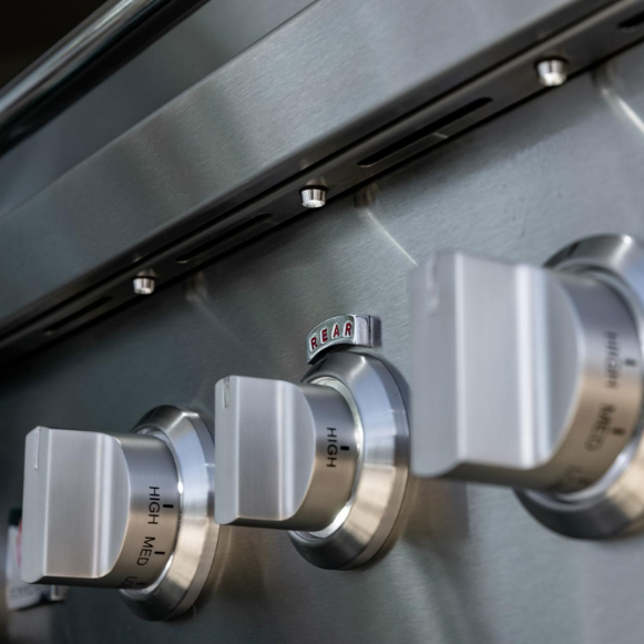 • White to red control knob bezel lights indicate when burners are on or off