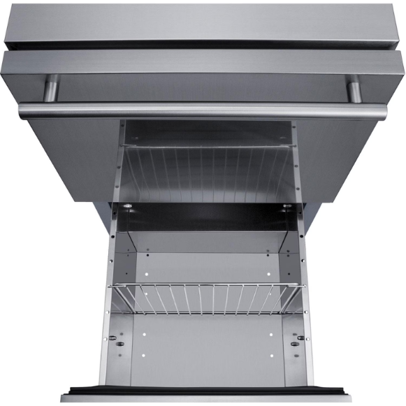 Summit manufactures the industry’s largest selection of 18 inch wide refrigeration for under the counter, with a variety of versatile choices for indoor or outdoor kitchens. The SPR182DOSH34 is a two-drawer all-refrigerator sized just under 18 inches wide. The front-breathing design and finished 304 grade stainless steel cabinet allow for built-in or freestanding use. Complete stainless steel construction inside and out offers durability in a professional look. Soft close glides allow you to gently close each drawer with a light touch. The drawers can also be customized with overlay panels to match or accent existing cabinetry design. The stainless steel kickplate and stylish handles complete the look. This unit features a right angle cord and sealed rear for added space spacings. Frost-free operation ensures minimum user maintenance inside the 3.4 cu ft. interior. Each drawer includes a divider to make it easier to separate and organize your storage, with attractive and efficient LED lighting to illuminate the interior. Intuitive digital controls display a temperature readout switchable from Fahrenheit to Celsius to best suit your preference. High/low temperature alarms audibly warn if the interior goes out of the recommended range. Additional features include an open drawer alarm, child lock to secure the controls, sabbath mode for optional observance, and eco-mode for energy savings. Model SPR182DOSH34 is ETL-S listed to NSF-7 commercial standards and also meets DOE guidelines for residential use. For a 32 high ADA compliant version, see the ADRD18. This unit is also approved for use in outdoor kitchens. Additional 18 wide options are available in front-opening styles as refrigerators, freezers, icemakers, beverage centers, and wine cellars. Browse the complete Summit lineup for more options.