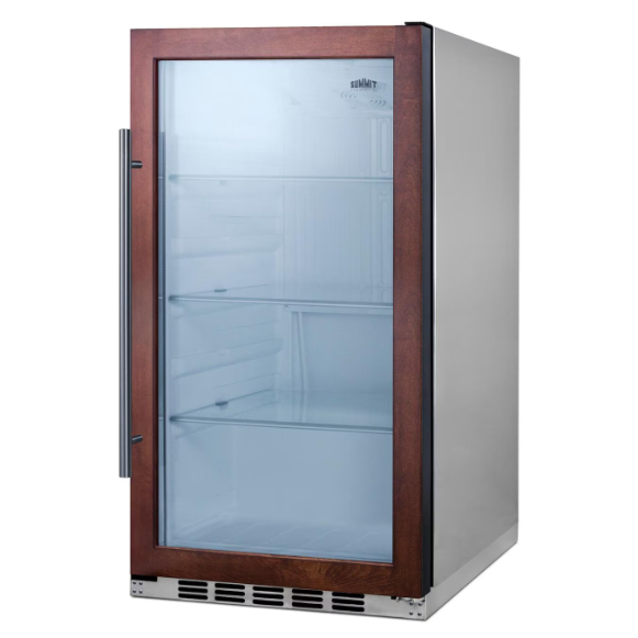 The Summit SPR489OSCSSPNR features a versatile design that meets NSF-7 and UL-471 commercial standards but is also approved for residential use. Sized with a slim 19-inch width and 17 3/4-inch shallow depth, it features a stainless-steel wrapped cabinet with a sealed back for safe installation in the outdoors. The height can be adjusted between 33 7/8 and 34 1/2 inches to best suit your space. The double pane tempered glass door includes a panel-ready trim that lets you create a custom look to match or complement other cabinetry (panel dimensions: 18 3/4-inch W x 31 9/16-inch H at a minimum of 3/4 inches thick). Customers supply their own handle to best match their setting. The space-saving right angle plug, and integrated hinge offer added space savings, while the stainless steel kickplate completes the look.