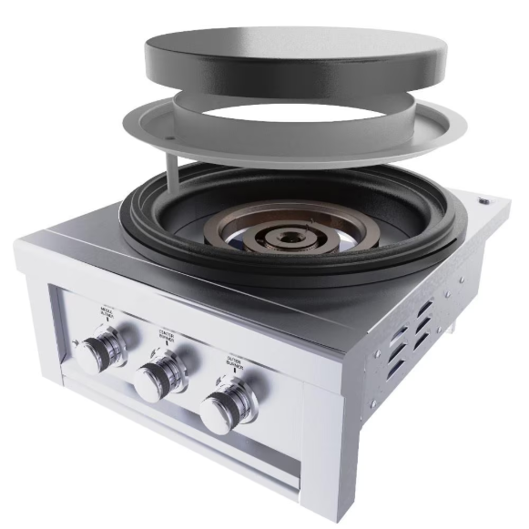 Sunstone® Series 24 Inch Power Cirqueâ„¢ Solid Steel Griddle, features Three heavy-duty Cast-Iron Cirqueâ„¢ burners totaling up to 65,000 BTU recessed into a Ceramic Heat Insulator making this the ONLY true circular power burner available in the market. Cooking on a Circular Cooktop provides an open experience for your outdoor living space. The circular cooktop gives you ease of use and serving to your family and since essentially all cooking accessories are round this provides a perfectly balanced heat distribution for your Stock Pots or Cooking Pans. Accenting this burner is the impressive LED lighting enabling you to use your burner in the late evening hours, and never miss a beat while you’re grilling it up for the whole family in any way you wish – the Power Cirque Burner has you covered.