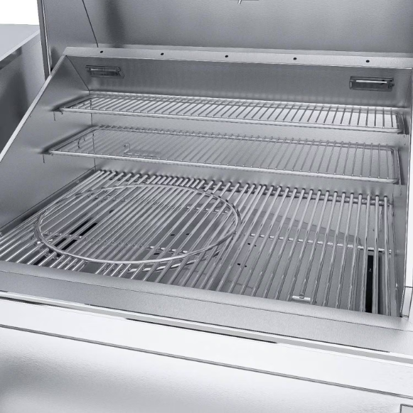 Crafted to withstand the test of time, the Sunstone 40 inch Electric Pellet Grill boasts premium 304 stainless steel construction for unparalleled strength. The polished accents add a touch of sophistication to its appearance. The double-lined hood, coupled with the heavy-duty oven-grade braided fire-rope gasket, forms a superior insulation and seal system, retaining heat for optimal cooking.