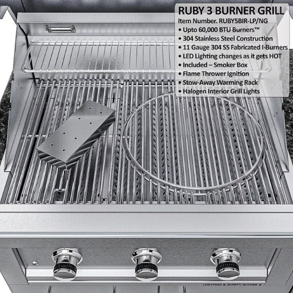 • Ruby Series Pro-Sear grill with 60,000 BTUs