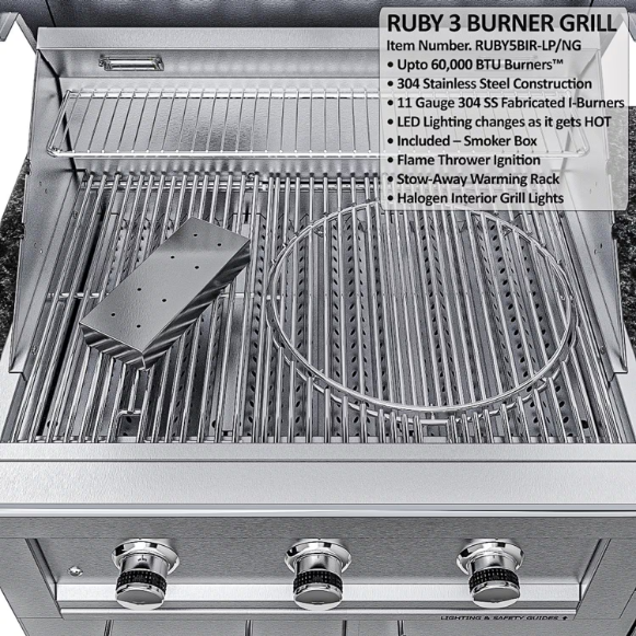 • Ruby Series 3-burner grill for the ultimate grilling experience