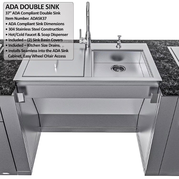 • 37 inch ADA Compliant double sink w/ hot/ cold faucet
