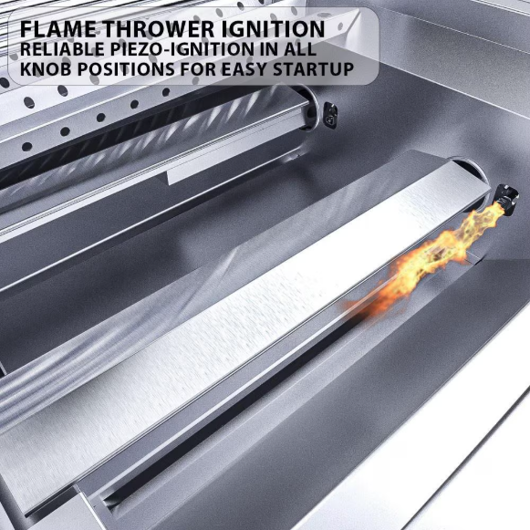 RUBY SERIES by SUNSTONE – This 36-Inch 4-Burner Built-In Propane Gas Grill is the Pinnacle of Grills, built with ALL 304-grade stainless steel construction, seamless edging, and eye-catching features. Exclusive ALL 304 SS Fabricated I-Burners with an output of up to 80,000 BTUs all with integrated independent Flame-Thrower Ignition in ALL burner positions. The cooking grids are Solid 304 Stainless Steel, with Exclusive Variable Rod Spacing on the circular inset grate, for larger items on the left and right sides and smaller items in the middle. The cooking grids are designed for endless upgradability with multiple upgrades possible like the Pizza Stone, Griddle, Charcoal Tray, Deep Fryer, or Sear Pro Grate, even add an extra Warming Rack or up to two Rotisserie Rods at the same time. Compliment all this with the interior halogen lighting, great for evening grilling and exclusive LED lighting effects on the front control panel change from a cool-blue light to White, Orange, and finally to a deep-red light as the grills temperature increases by a rate of up to 150 degrees per minute. With Sunstone Ruby Grills LED Lights, you will know exactly when your grill is ready to barbeque. Included Smoker Box, Rotisserie Rod with Motor, and Spikes. All Construction Materials & Components are made with Solid 304 Stainless Steel – Engineered and Designed in the USA, by the grilling experts of Sunstone.