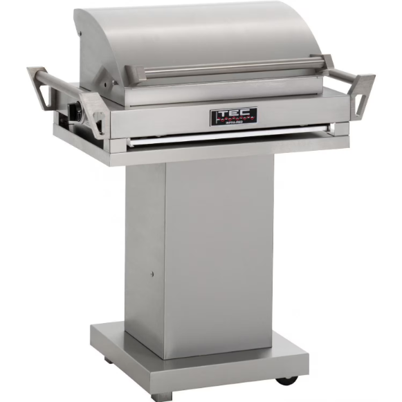 Get ready for moist and flavorful grilling like you have never experienced before, with the TEC G-Sport FR infrared grill. Using a unique and efficient all infrared burner system, the TEC G-Sport FR grill cooks with 100 percent infrared energy, eliminating hot air and reducing moisture loss in food by up to 35 percent. Save on fuel with extremely fuel efficient burners, using 50 percent less gas than other infrared burners on the market. The TEC patented flare-proof stainless steel infrared burner system combined with the radiant glass emitter panel results in tender, juicy, charbroil flavored food. The position of the stainless steel cooking grates, radiant glass panels, and infrared burners creates even heat distribution across the cooking surface and virtually eliminates flare-ups. The TEC G-Sport FR propane gas grill eliminates the need of a side burner because you can place your pots or pans on the cooking grids or radiant panels to heat and cook like on an indoor cooktop. The convenient design of this unit makes it easy to transport to sporting events or vacation destinations. Simply remove the thumbnail screws from the underside of the grill and lift the grill off the pedestal. Tool/Towel bars, located on either side of the grill serve as handles for carrying. This American-made portable infrared grill is built to last, resisting rust and dents with a thick 304 grade 18-gauge stainless steel body, 309 square inches of cooking area, a stainless steel grid burner rated at 22,000 BTUs, a stainless steel removable drip tray, and is certified to use on any surface, including wood. The grill head measures 30-inch wide, and is 36-inches wide with the handles. The push button battery ignition, self-cleaning glass radiant panels, and removable inner trim panels make it easy to clean and operate. Also included with this grill is a propane hose and regulator.