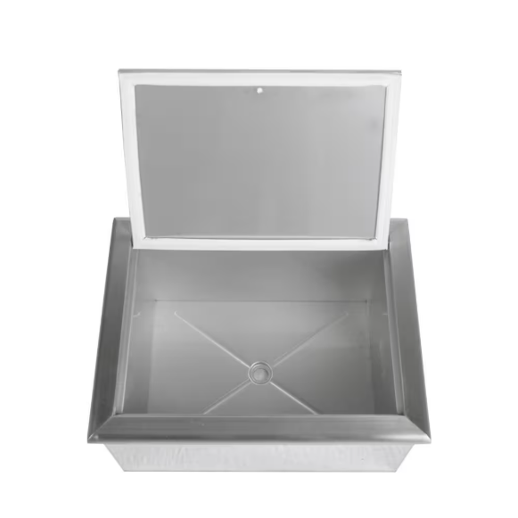 Our drop-in cooler is constructed with heavy duty stainless steel to resist corrosion and give you that beautiful finish. It is a convenient and stylish way to store drinks and anything else you need to keep cold but close by. The stainless steel lid will make sure your items stay cold, while the convenient drain hole will make sure the melting ice drains away. Easy to install and clean.