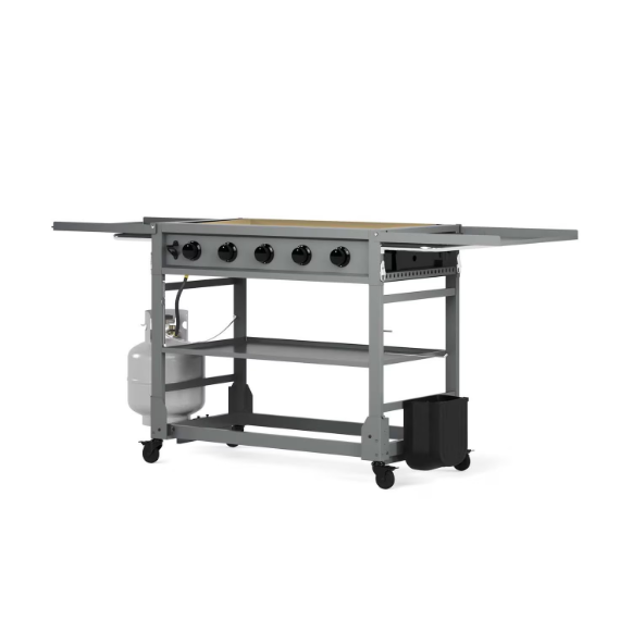 Level up your grilling game with the TYTUS Anaheim 36 inch 5-Burner Griddle – the ultimate flat-top cooking experience. A recessed 4.5 mm oil-coated carbon steel griddle plate delivers excellent heat distribution and reduces spills. Five cook zones across 600 square inches of cooking space go from high heat searing to low temperature cooking with the turn of a dial, so you can cook up delicious bacon & eggs, burgers & brats or surf & turf, all from the comfort of your back yard. Fast, no-tool assembly with the included cover, spatulas, oil squeeze bottles, and scraper give you everything you need to get cooking within minutes of opening the box.