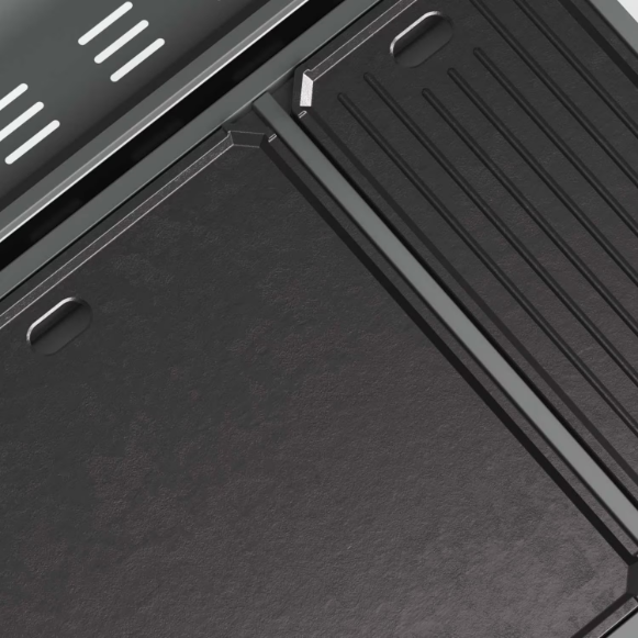 - Dual-sided, cast aluminum plates let you effortlessly switch between grilling and griddling