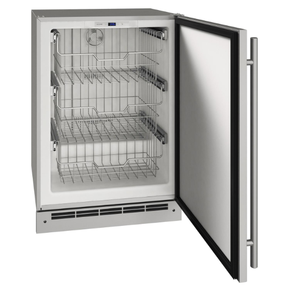 Store smoothie ingredients, frozen treats, and more in our 24-inch Outdoor Convertible Freezer. Need more refrigeration space? This model converts to a refrigerator with the touch of a button. The cabinet, toe-kick, and full-wrap door are finished in stainless steel. The U-Line Outdoor Collection makes the perfect outdoor kitchen or bar companion.