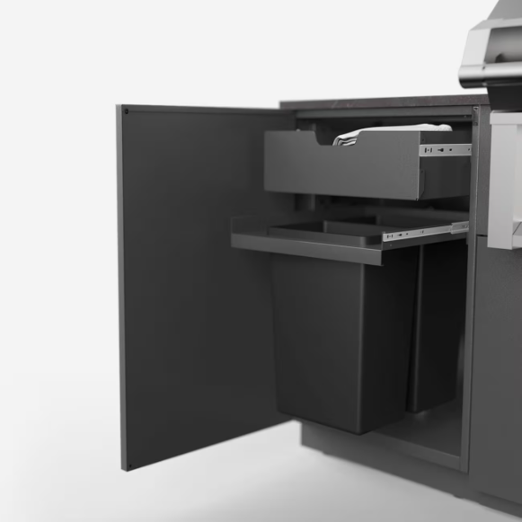 This outdoor kitchen series was designed to be both practical and efficient. Allowing you to effectively store seasonal or everyday items such as pots, gardening materials, outdoor cushions, towels and more, while leaving the counter clear for gardening or entertaining. Included accessories are a heavy duty drawer,refuse & recycling Module, and a sink and faucet.
