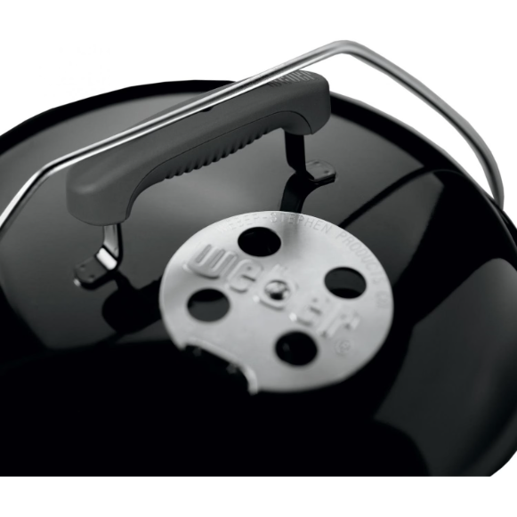 Big fun comes in small sizes! A miniature take on the classic Weber kettle, the Smokey Joe Premium charcoal BBQ grill helps you grill in style even in tight spaces like apartment balconies and its take-along size makes it perfect for picnics, camping or tailgating. Made of premium-grade U. S. Steel, the bowl and lid of this portable Weber kettle grill are coated with a black porcelain enamel inside and out that is baked on, fusing the finish to the steel to prevent rusting and peeling through years of use. The adjustable, no-rust aluminum top vent provides the proper airflow needed for perfect grilling, and helps you to control the temperature across the 14 1/2-inch diameter cooking area. The Smokey Joe Premium features a lid lock that secures the lid in place for carrying, which lowers to double as a lid holder while you grill. Weber Smokey Joe grills also feature heavy-duty, plated steel cooking grates and a glass-reinforced nylon handle that will withstand the elements for the life of the grill. With the Smokey Joe Premium, you will love its compact size and stylish looks every time you fire it up!