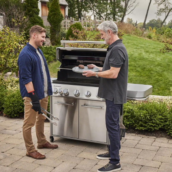 Step up to the Summit FS38 S Natural Gas grill, the top-of-the-line Weber gas grill reinvented with features that expand your outdoor cooking techniques and enable you to entertain at a higher level. Grill restaurant-quality steaks with the new top-down infrared broiler that directs blazing heat onto the top of food, producing edge-to-edge carmelized crust that seals in flavor. Light up the stainless-steel smoker box to give your food a low-and-slow, smoky boost and break out of your routine with an integrated rotisserie. This grill is equipped with the WEBER CRAFTED cooking grates and frame kit that lets you transform your grill into a griddle, pizza oven, wok, and more with a variety of custom-fit grillware (sold separately).