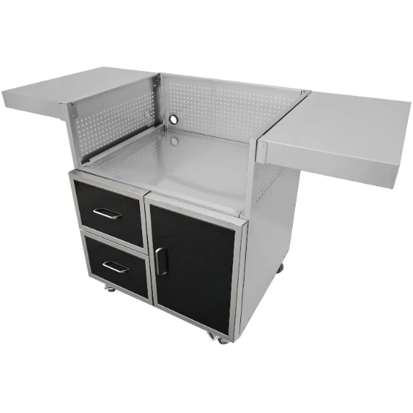 Featuring spacious drawers and an access door that offers convenient storage for grilling tools